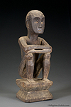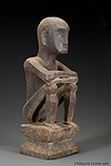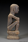 04 Large seated male bulul in the Bunney style, 73 cm high. The style of carving is rather angular, almost cubist. It has a concave, heart-shaped face, typical of the Bunney style in central Ifugao (see Anderson, Indigenous Art of the Northern Philippines, 2010, figures 103 to 111). The face has a strong, tough and alert expression, befitting a spirit presence that has to protect the rice granary and household. There is significant blood encrustation concentrated on top of the head and face and on the upper body and arms, diminishing towards the base. I bought this bulul in 1993 in Banaue.