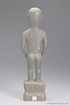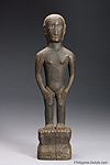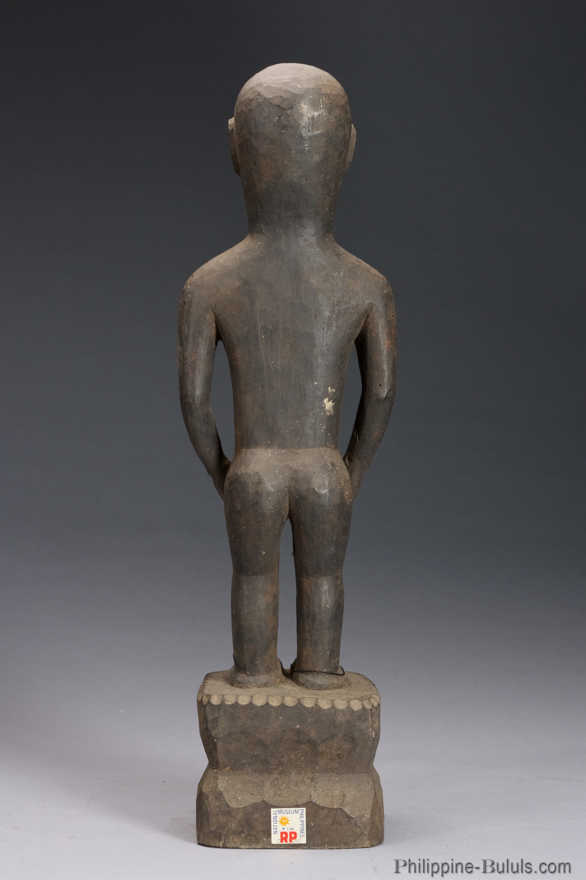 27 Standing female bulul in the Central Ifugao style, 58 cm high, with an old patina from the blood of sacrificed pigs. She has a slight swelling in her lower abdomen that could be a baby-bump. Certified as a cultural property by National Museum of the Philippines with stamp 0073240. The Certificate of Registration describes this bulul as an "Heirloom Piece from Ifugao Province."