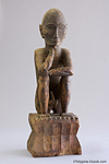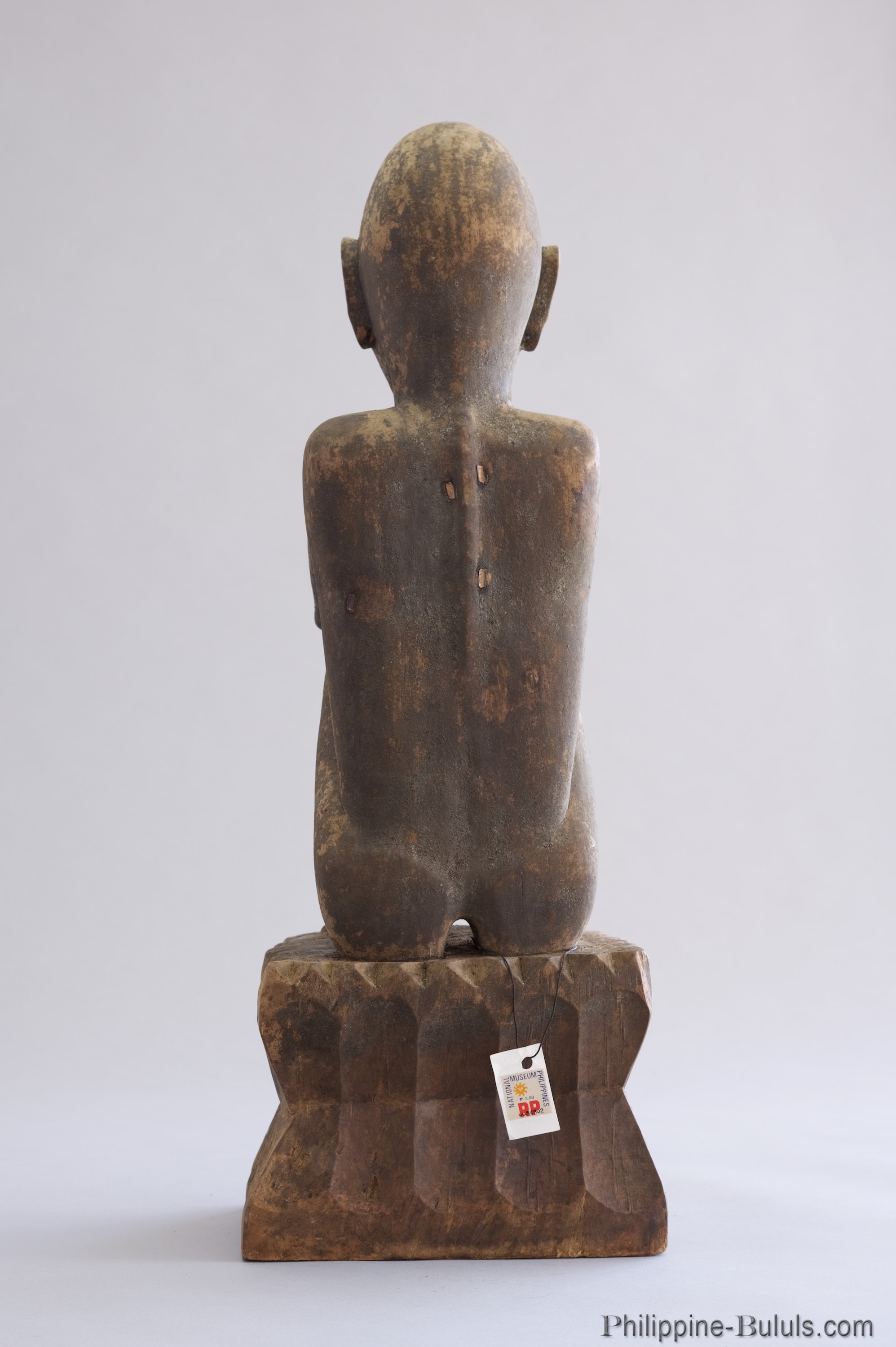 44 Seated male bulul from Hingyon, 66.5 cm high, nara wood, very well carved in the realistic manner of Tagiling. Said to be from Obnag barangay, Hingyon district in Ifugao, and owned by Mr. Dupling whose father had it carved ca 1946 to replace a similar family bulul that was burned during the war. Certified as a cultural property by National Museum of the Philippines, October 2003, with stamp 0084802 and estimated age of late 1940's.