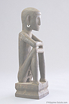 45 Seated male bulul from Lagawe, 44 cm H. It has a slim body and the head is realistically carved with hair shown and earrings. It comes from Buliwang bario, Lagawe region in Ifugao province. Certified as a cultural property by the National Museum of the Philippines, October 2003, with stamp 0084807 and an estimated date of ca 1940-50.